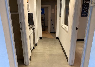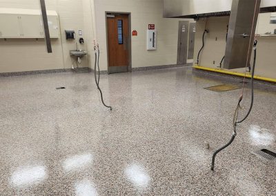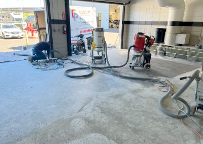 Once the repairs have cured, we proceed with a second round of grinding. This finer grind smooths out any remaining rough patches and ensures that the repair areas blend seamlessly with the rest of the floor. This step further refines the surface, preparing it perfectly for the sealing process.